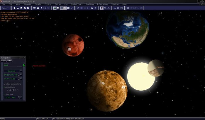 Los planetas están magnificados por lo que parece más cerca los unos a los otros de lo que realmente están. Puedes ver al mismo tiempo las características de la superficie de los planetas y tener una idea de su relación posicional. Esto le permite ver una fascinante danza de los planetas.