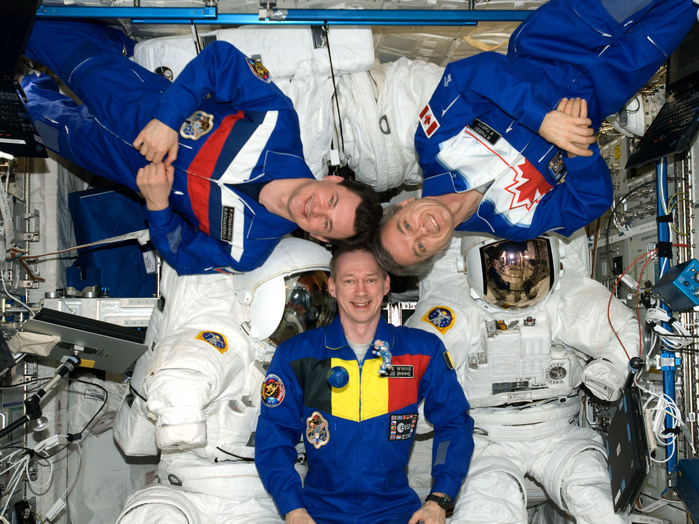 La tripulación de la Soyuz TMA-15: Frank De Winne, Roman Romanenko y Bob Thirsk