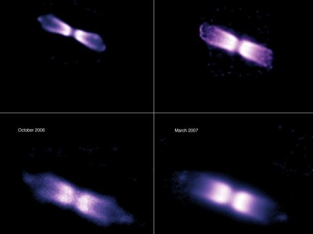 Zielobjekt der neuen detaillierten Studie war das Objekt mit der Bezeichnung V445 Puppis im Sternbild “Achterdeck des Schiffs” (lat. Puppis) am Südhimmel. Das Objekt war bereits im November 2000 als so genannte Nova auffällig geworden. Novae sind Ereignisse, bei denen ein Stern vorübergehend stark an Helligkeit zunimmt, im Falle von V445 um den beachtlichen Faktor 250; sie ereignen sich in Sternsystemen, in denen sich ein Weißer Zwerg und ein Begleiterstern umkreisen. Der Weiße Zwerg zieht Materie von seinem Begleiter ab, die sich um den Zwergstern sammelt, dabei mit der Zeit instabil wird und explodiert. Dabei werden große Mengen an Materie in den Weltraum geschleudert.