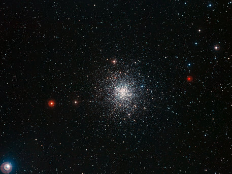 Astronomen kennen rund 150 so genannte Kugelsternhaufen, dicht bevölkerte Ansammlungen alter Sterne, die unsere Heimatgalaxie, die Milchstraße, umkreisen. Auf dieser neuen Aufnahme von Messier 107, die mit dem Wide Field Imager am MPG/ESO 2,2-Meter-Teleskop am La Silla-Observatorium in Chile gewonnen wurde, wird die Struktur eines solchen Kugelsternhaufens bis ins kleinste Detail sichtbar. Die Untersuchung dieser Sternenschwärme verrät den Astronomen viel über die Geschichte unserer Milchstraße und ermöglicht es ihnen zu verstehen, wie sich Sterne entwickeln.