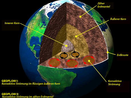 Die Experimentserie GeoFlow erforscht die Strömungen im Erdinneren. Während GeoFlow I die konvektiven Strömungen im äußeren Erdkern untersuchte, wird GeoFlow II den konvektiven Strömungen im zähen Erdmantel nachgehen.