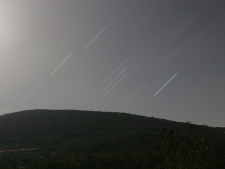 Wenn man den Sternenhimmel mehrere Minuten lang belichtet, werden die Sterne zu Strichspuren.