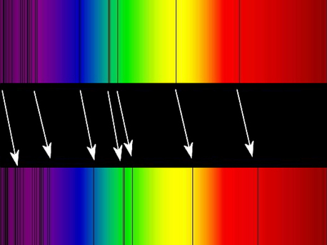 Dafür ist unter anderem der so genannte Doppler-Effekt verantwortlich: Wenn sich eine Galaxie von uns weg bewegt, dann verschieben sich die Spektrallinien zum roten, langwelligen Ende des elektromagnetischen Spektrums. Bewegt sich eine Galaxie auf uns zu, dann sind die Spektrallinien zum blauen, kurzwelligen Ende des Spektrums verschoben. Ähnliches kennt man von Schallwellen: Die Tonhöhe (beispielsweise vom Martinshorn eines Krankenwagens) ändert sich, wenn sich die Schallquelle auf den Hörer zu oder von ihm weg bewegt.