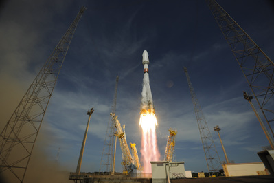 Start einer Soyuz, mit an Bord das zweite Paar von Galileo-Satelliten. Quelle: ESA–S. Corvaja, 2012