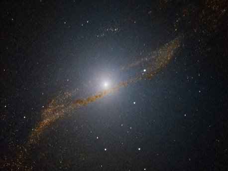 Herschel could not know, however, that this beautiful and spectacular appearance is due to an opaque dust lane that covers the central part of the galaxy. This dust is thought to be the remains of a cosmic merger between a giant elliptical galaxy and a smaller spiral galaxy full of dust.