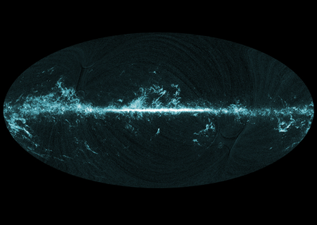 The second all-sky image is the first map to show carbon monoxide over the whole sky. Cold clouds with forming stars are predominantly made of hydrogen molecules, difficult to detect because they do not readily emit radiation. Carbon monoxide forms under similar conditions, and though it is rarer, the gas emits more light. Astronomers can use carbon monoxide to identify the clouds of hydrogen where stars are born. Surveys of carbon monoxide undertaken with radio telescopes on the ground are time-consuming, so they are limited to portions of the sky where clouds of molecules are already known or expected to exist. Planck scans the whole sky, allowing astronomers to detect the gas where they weren't expecting to find it. Planck's primary goal is to observe the Cosmic Microwave Background, the relic radiation from the Big Bang, and to extract its encoded information about what our universe is made of, and the origin of its structure. This relic radiation can only be reached once all sources of foreground emission, such as the galactic haze and the carbon monoxide signals, have been identified and removed. "The lengthy and delicate task of foreground removal provides us with prime datasets that are shedding new light on hot topics in galactic and extragalactic astronomy alike," said Jan Tauber, Planck project scientist at the European Space Agency. Planck's first findings on the Big Bang's relic radiation are expected to be released in 2013. The new results are being presented this week at an international astronomy conference in Bologna, Italy.
