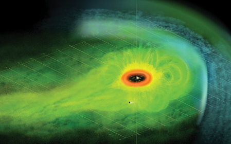 This is an artist's concept of the Saturnian plasma sheet based on data from Cassini magnetospheric imaging instrument. Image credit: NASA/JPL/JHUAPL