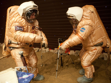 El terreno, de unos 10 metros de largo por 6 de ancho, está cubierto con arena rojiza y dispuesto de tal forma que imita la superficie del cráter Gusev en Marte.